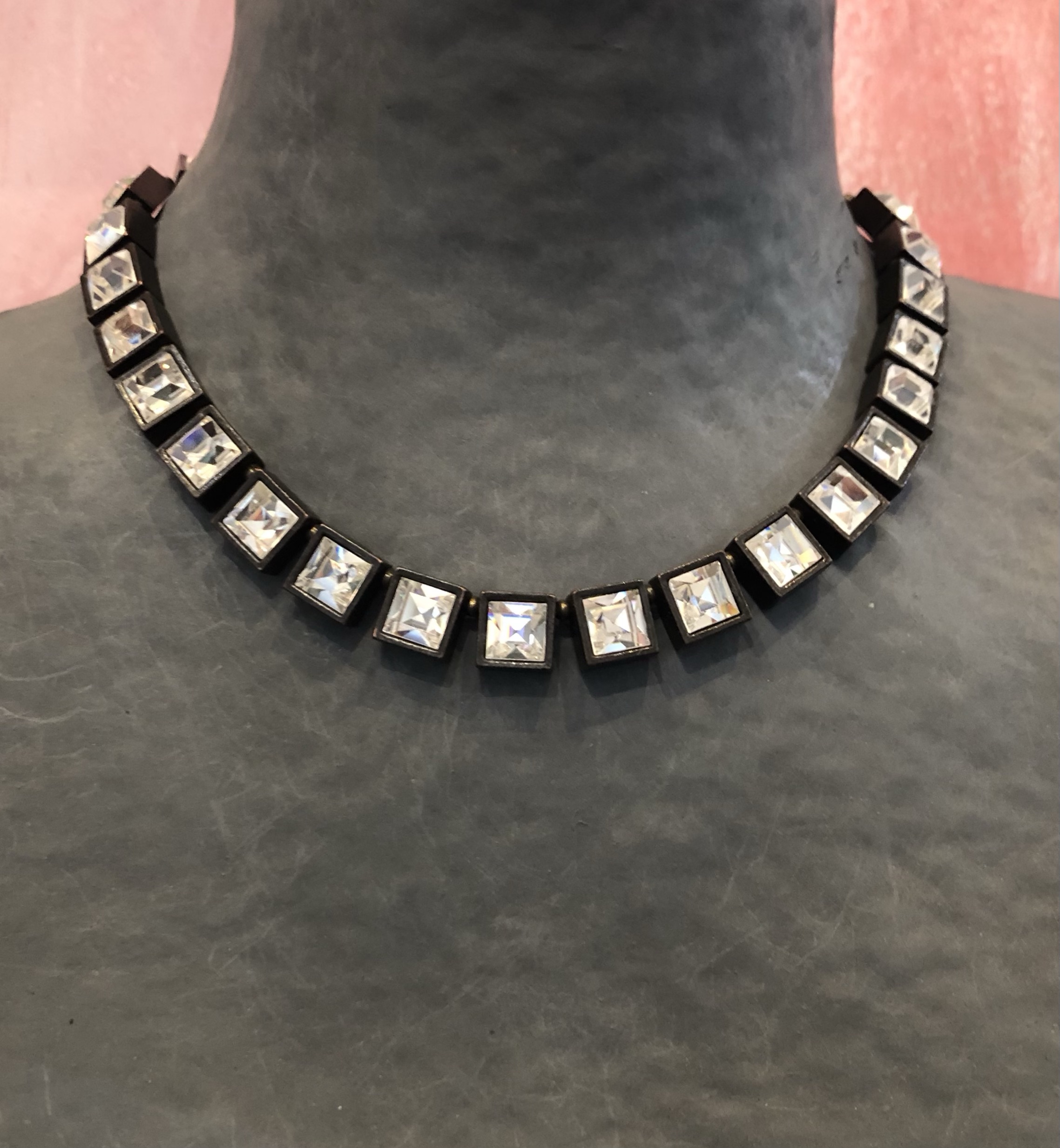 Carre crystal bronze necklace