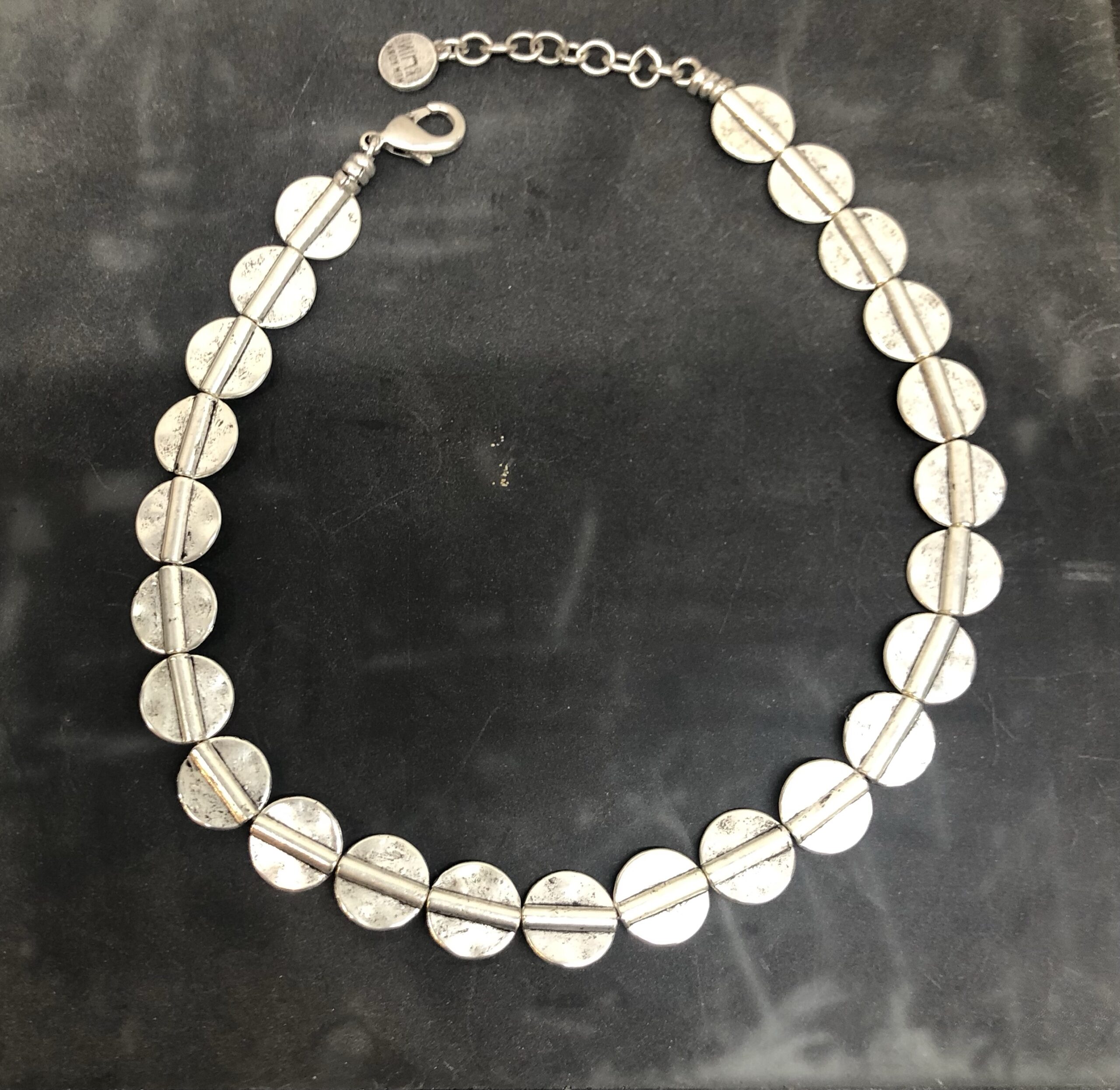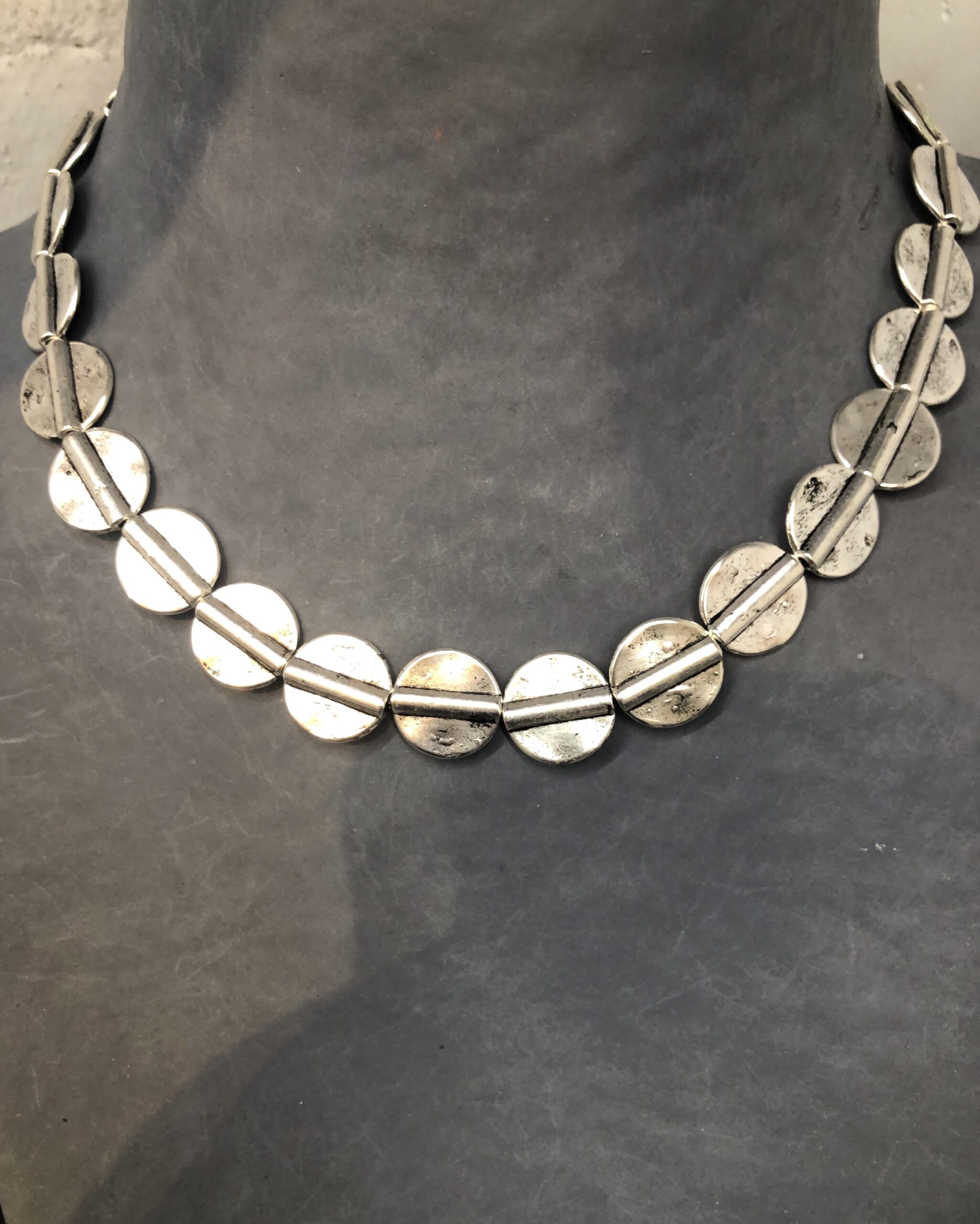 Flat disc beads necklace. Silver plated brass.13 inches length +extension.